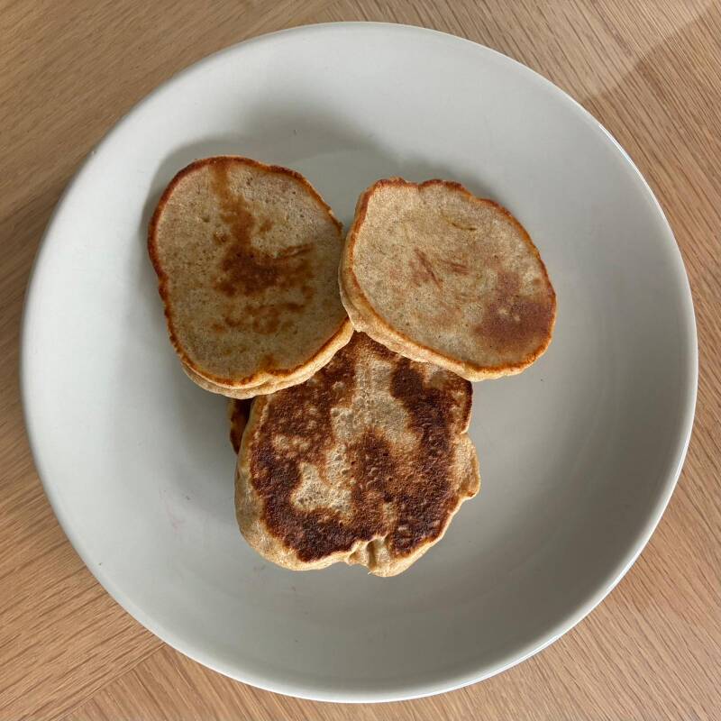 - Voeg 1 eetlepel beslag toe aan de verhitte pan. Bak beide zijden. Je kan ook kiezen om grotere pannenkoeken te maken, maar dan bestaat de kans dat de pannenkoek uiteen valt.